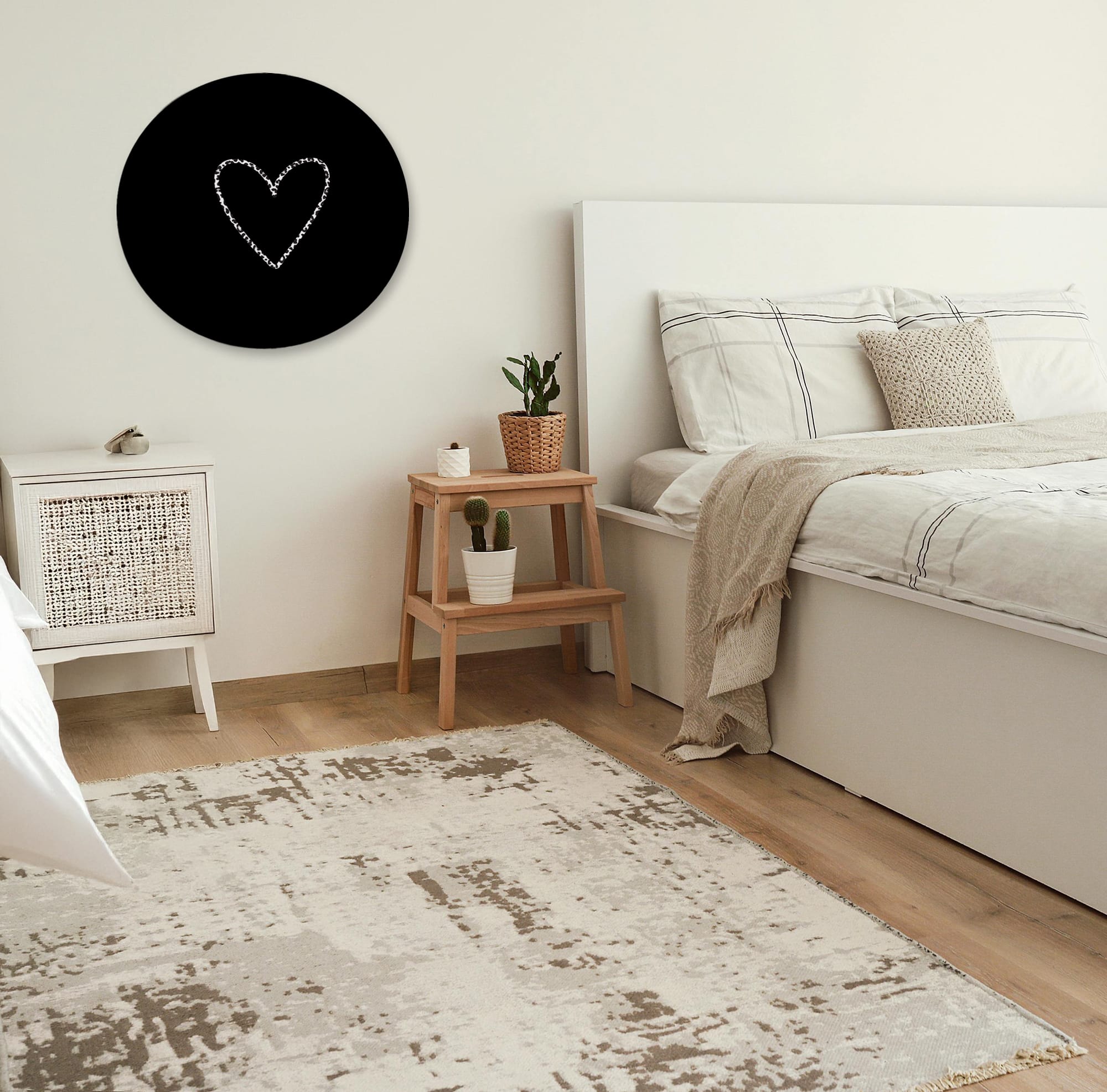 Breng een moderne en speelse touch aan je interieur met deze prachtige muurcirkel in zwart-wit. Het subtiele hartje en de contrastrijke achtergrond maken dit ontwerp tijdloos en veelzijdig. Perfect voor de woonkamer, slaapkamer of hal en een stijlvolle toevoeging aan een modern, industrieel of minimalistisch interieur.